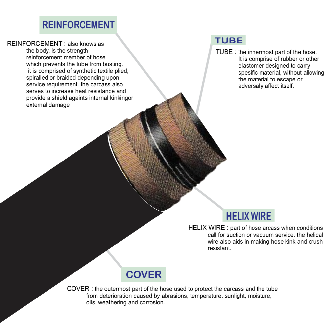 A high quality flexible hose for replacing cast iron pipes for transfer or abrasive materials or corrosive chemicals where installation requires minimum bends.